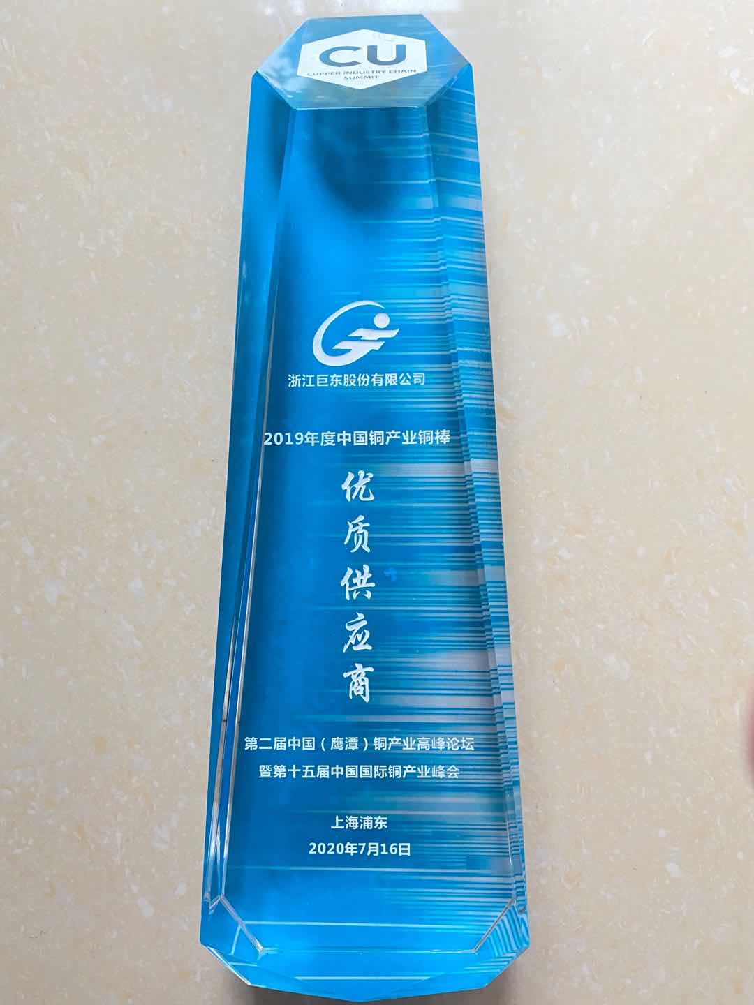 2020年7月榮獲2019年度中國銅產業銅棒優(yōu)質供應商 2020年12月央視2套經濟欄目采訪巨東股份 榮獲2020年度“臺州市民營企業納稅50強”、“路橋區工業企業納稅第二” 子公司臺州巨東精密鑄造有限公司獲“臺州市制造業高質量發(fā)展強企”的稱號;